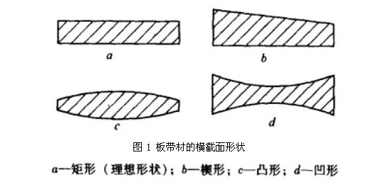 矩形截面的横向厚差为零,属于理想的情况。楔形截面的横向厚差是因左右压下装置调整不当引起的。对称的凸形或凹形截面的横向厚差是由于轧制时实际辊缝形状所造成的,它决定于辊型的设计和调整以及坯料等因素。在产品标准中,对横向厚差都做了规定。